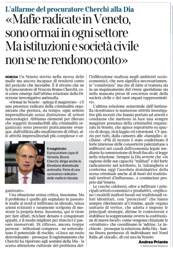 MAFIE IN VENETO Condividi: Stampa (Si apre in una nuova finestra) Stampa Invia un link a un amico via e-mail (Si apre in una nuova finestra) E-mail Condividi su WhatsApp (Si apre in una nuova finestra) WhatsApp Mi piace Caricamento... Correlati