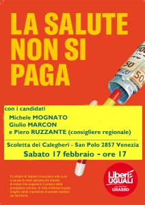 Con l’iniziativa “La salute non si paga” Liberie Uguali intende porre alla vostra attenzione una priorità sociale e politica del suo programma